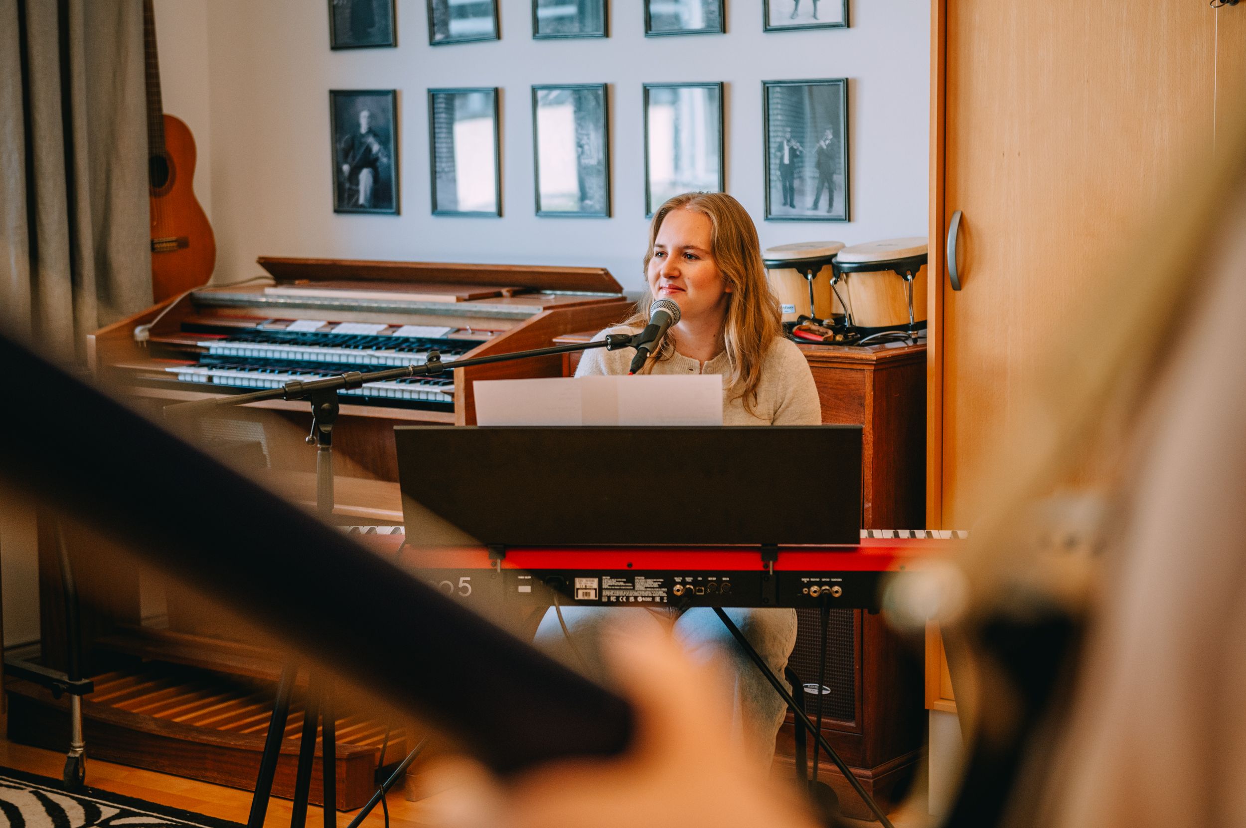 Våra övningsrum är utrustade för musikproduktion (ljudkort och dator) och med piano/gitarr.